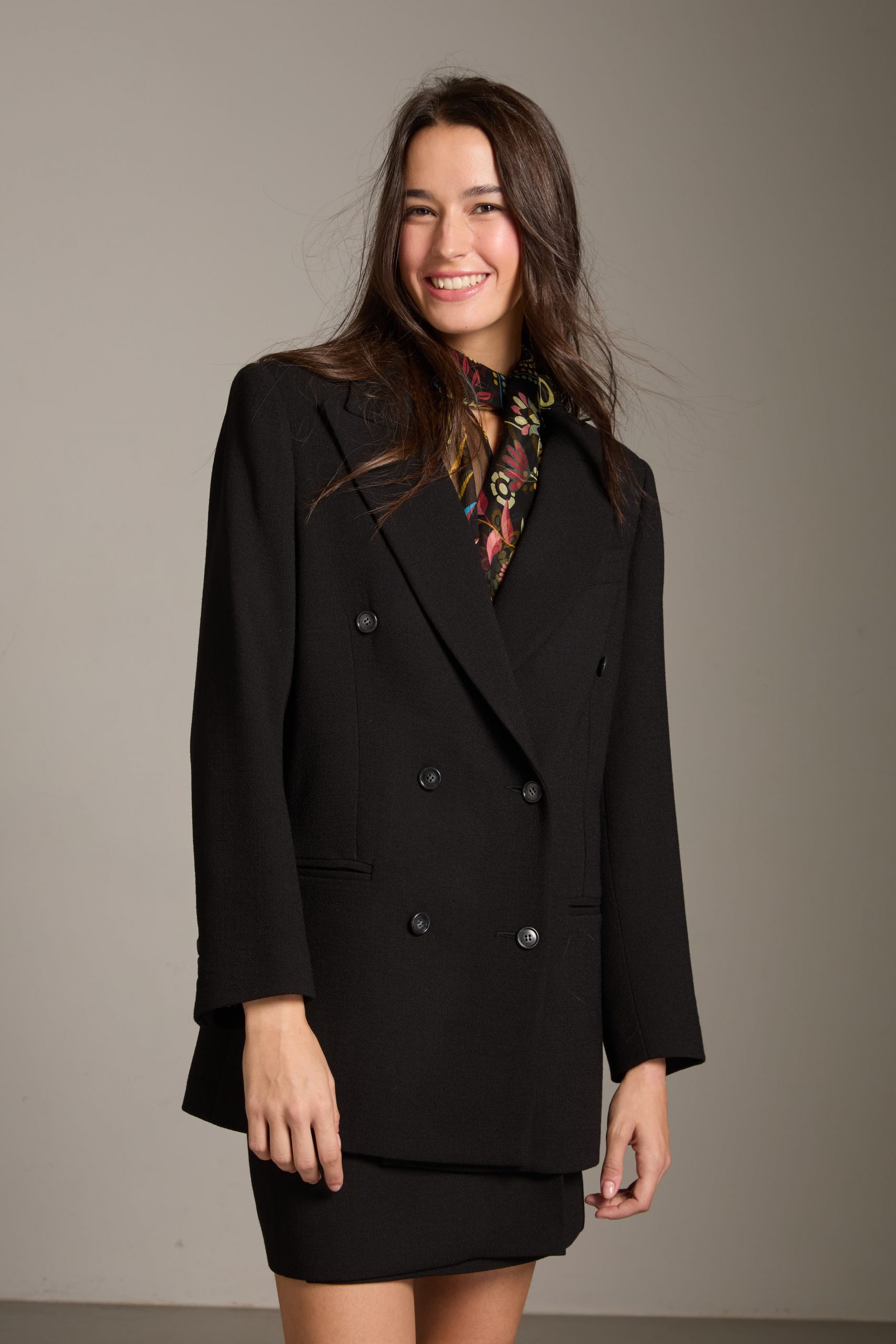 Blazer Sofia di Carla Saibene, giacca doppiopetto con taglio sartoriale, vestibiltà over, in crepe di lana nera double