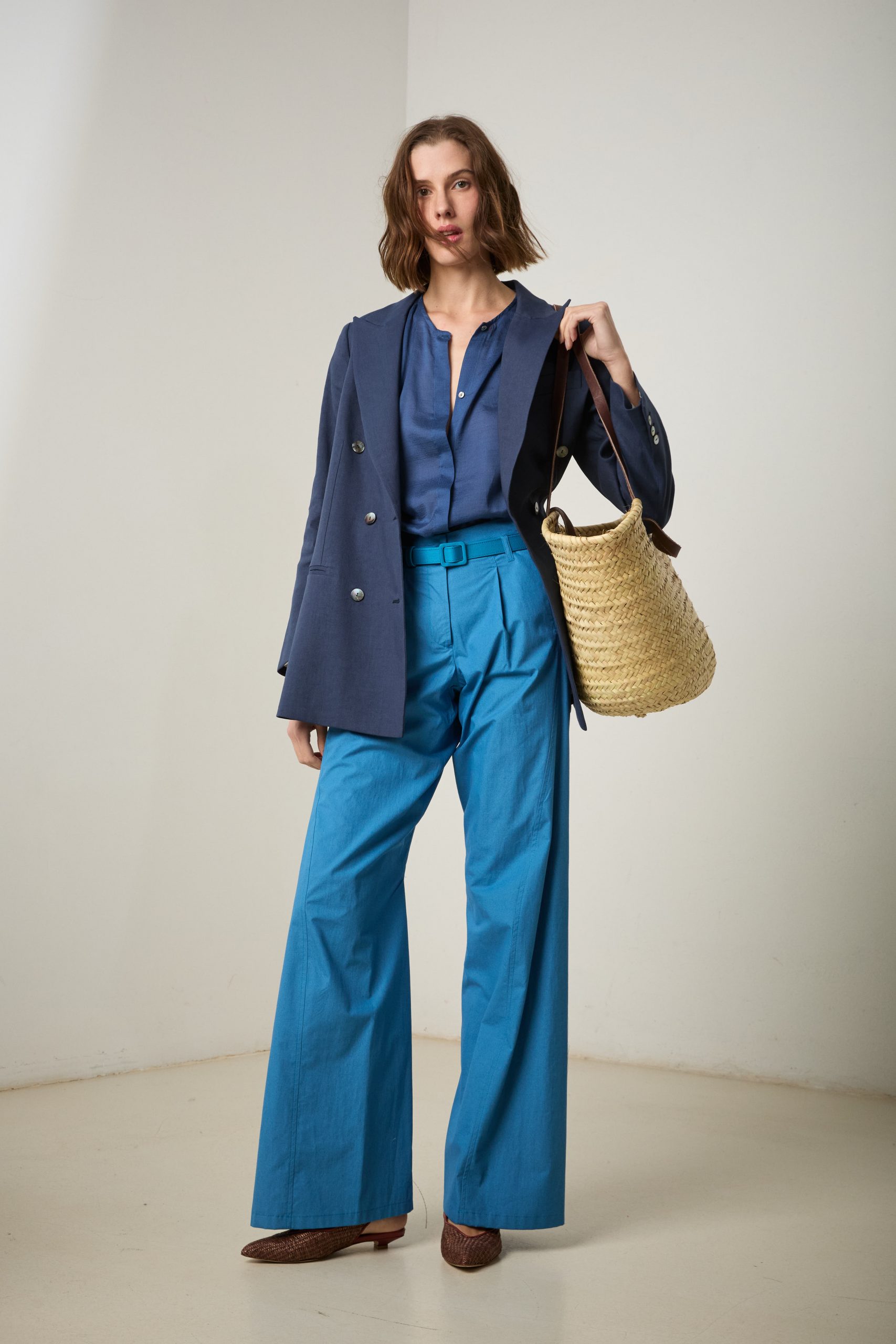 Camicia luce in cotone e seta blu