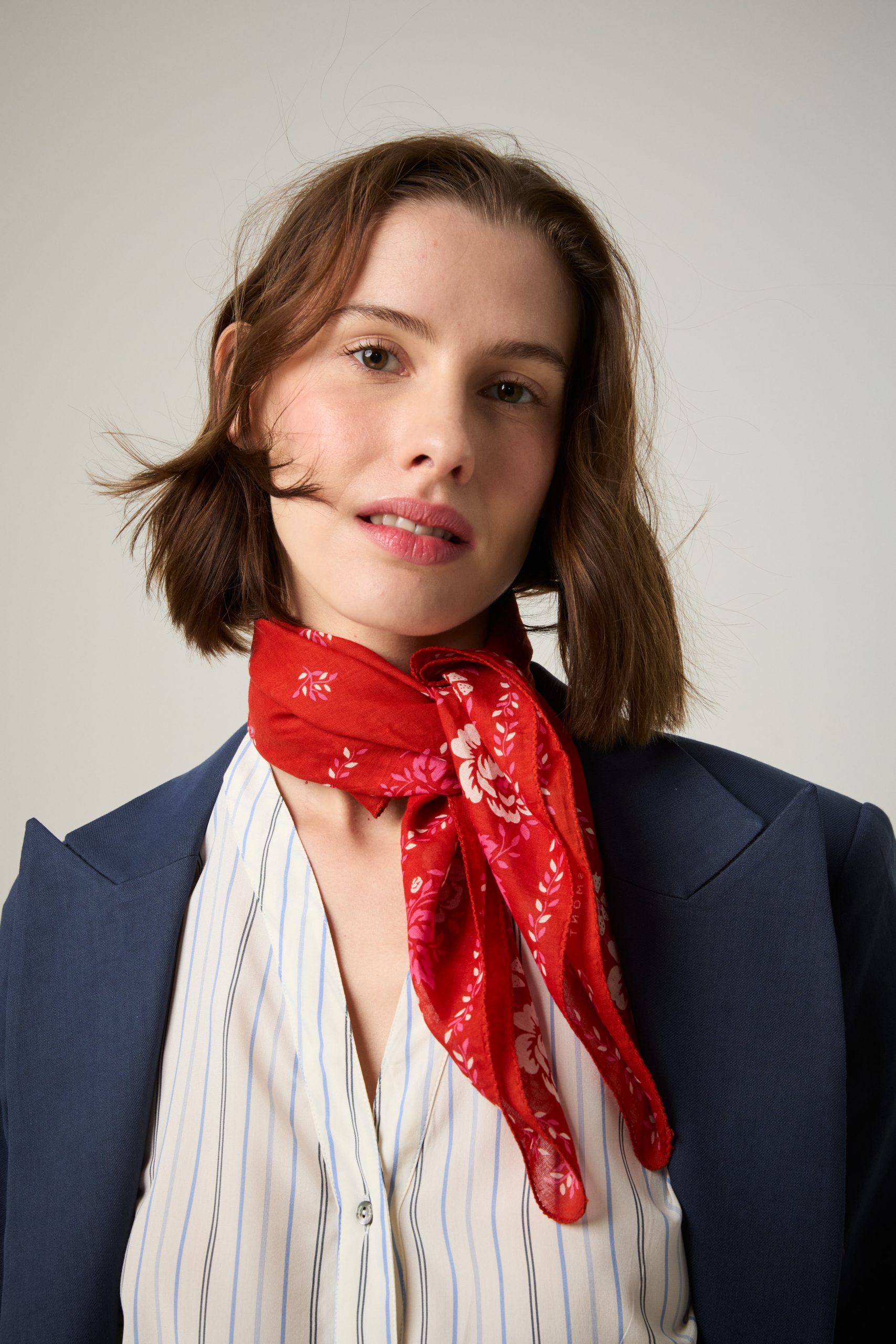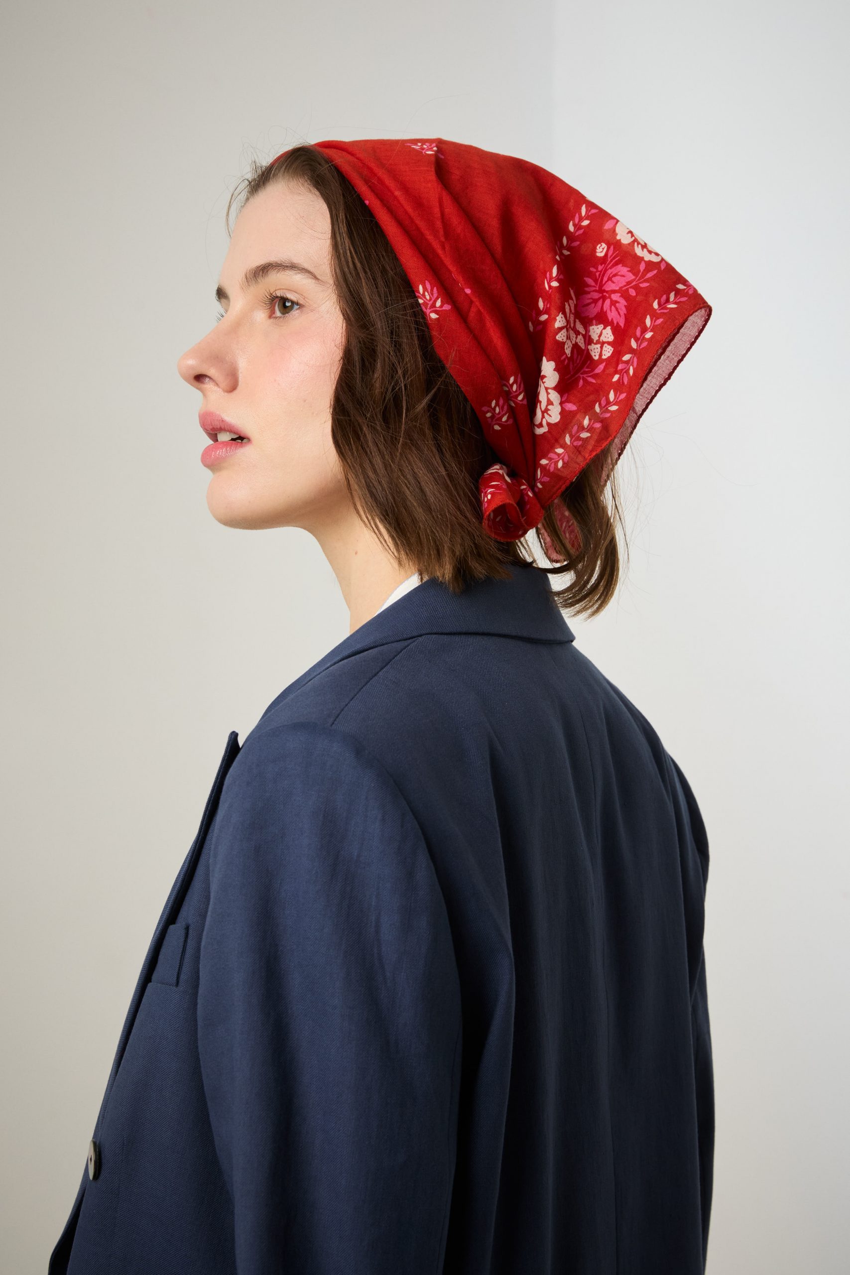Foulard in cotone rosso a fiori bianchi