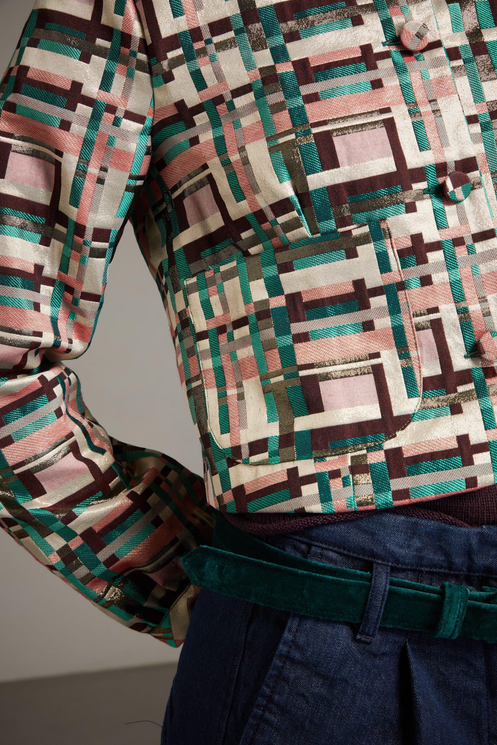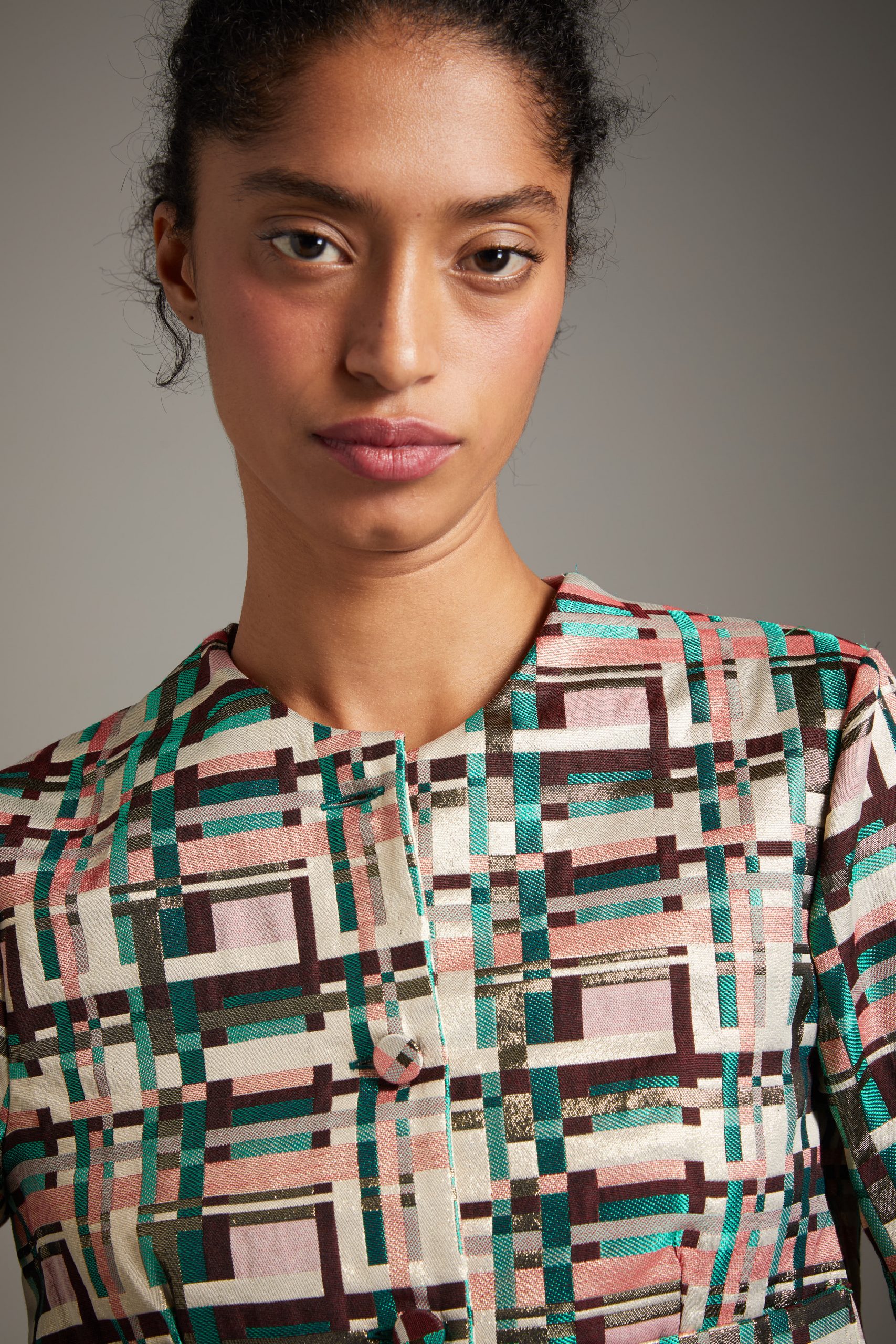 Giacca Clio a quadri jacquard lurex verde bordeaux e oro