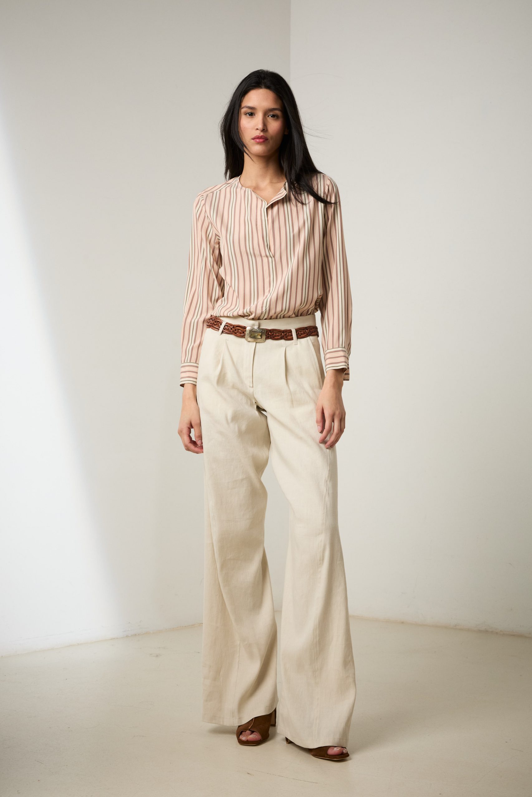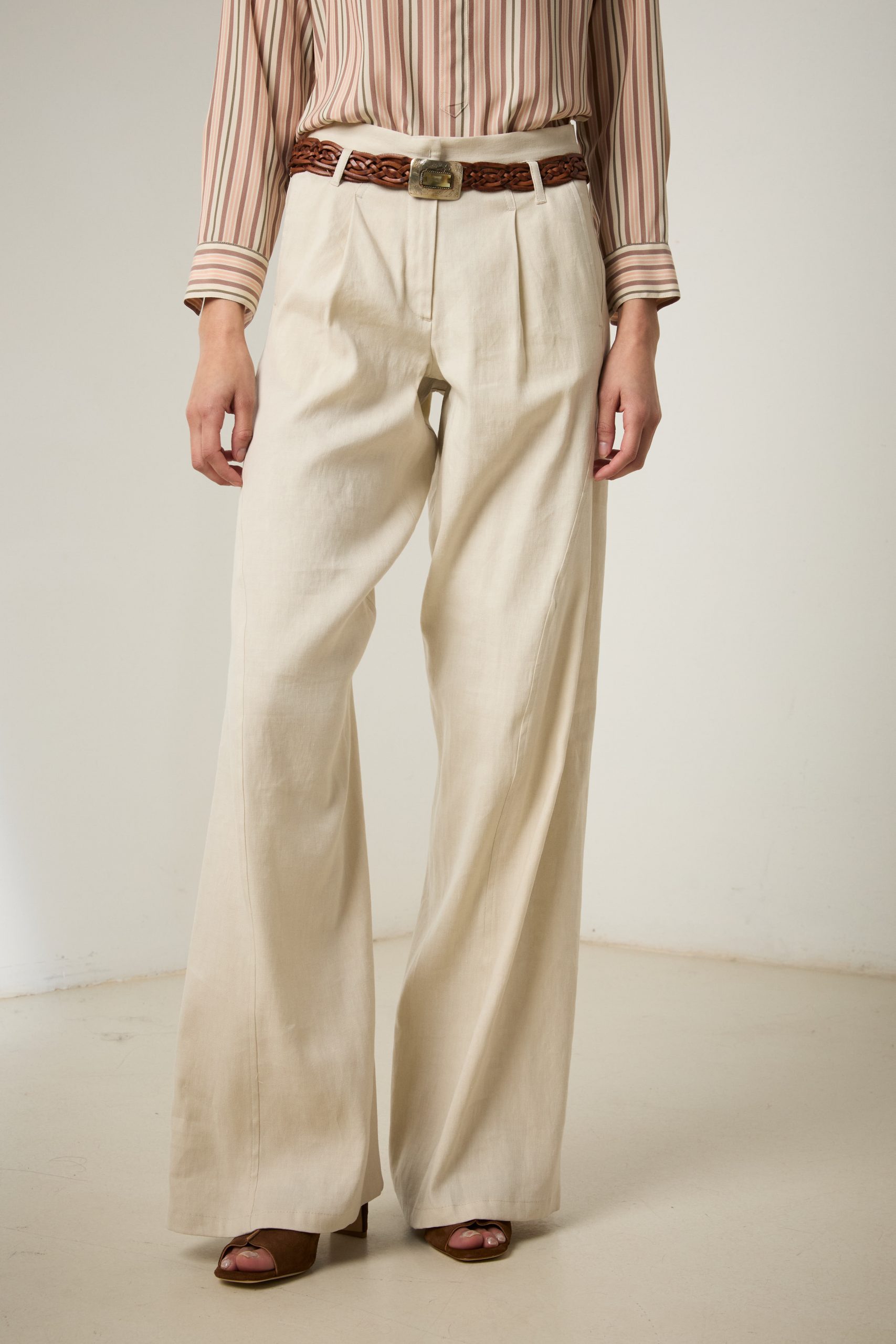 Pantaloni Carla di Carla Saibene, il nostro modello iconico dall’irresistibile aria effortlessly chic, in cotone e lino bianco gesso