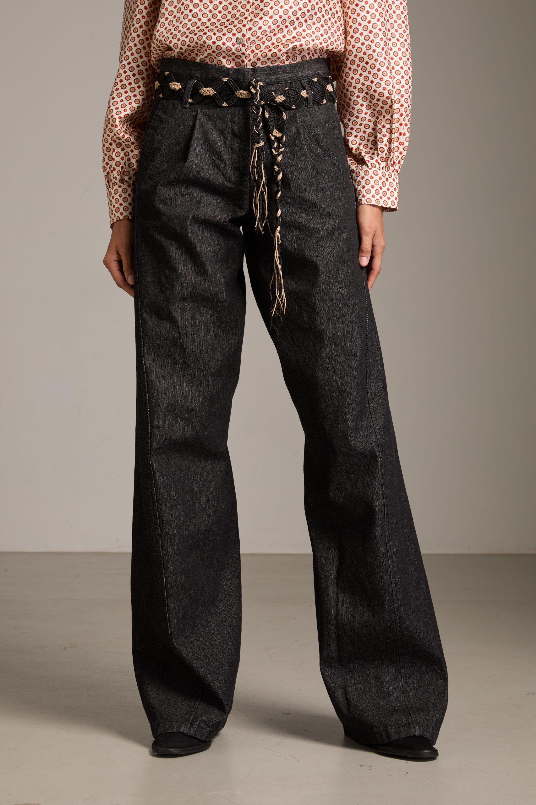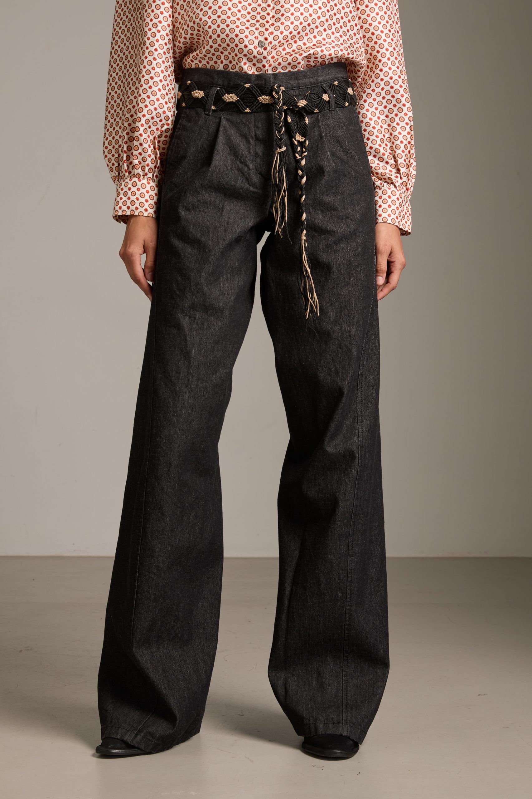 Pantaloni Carla di Carla Saibene, il nostro modello iconico dall’irresistibile aria effortlessly chic, in denim antracite