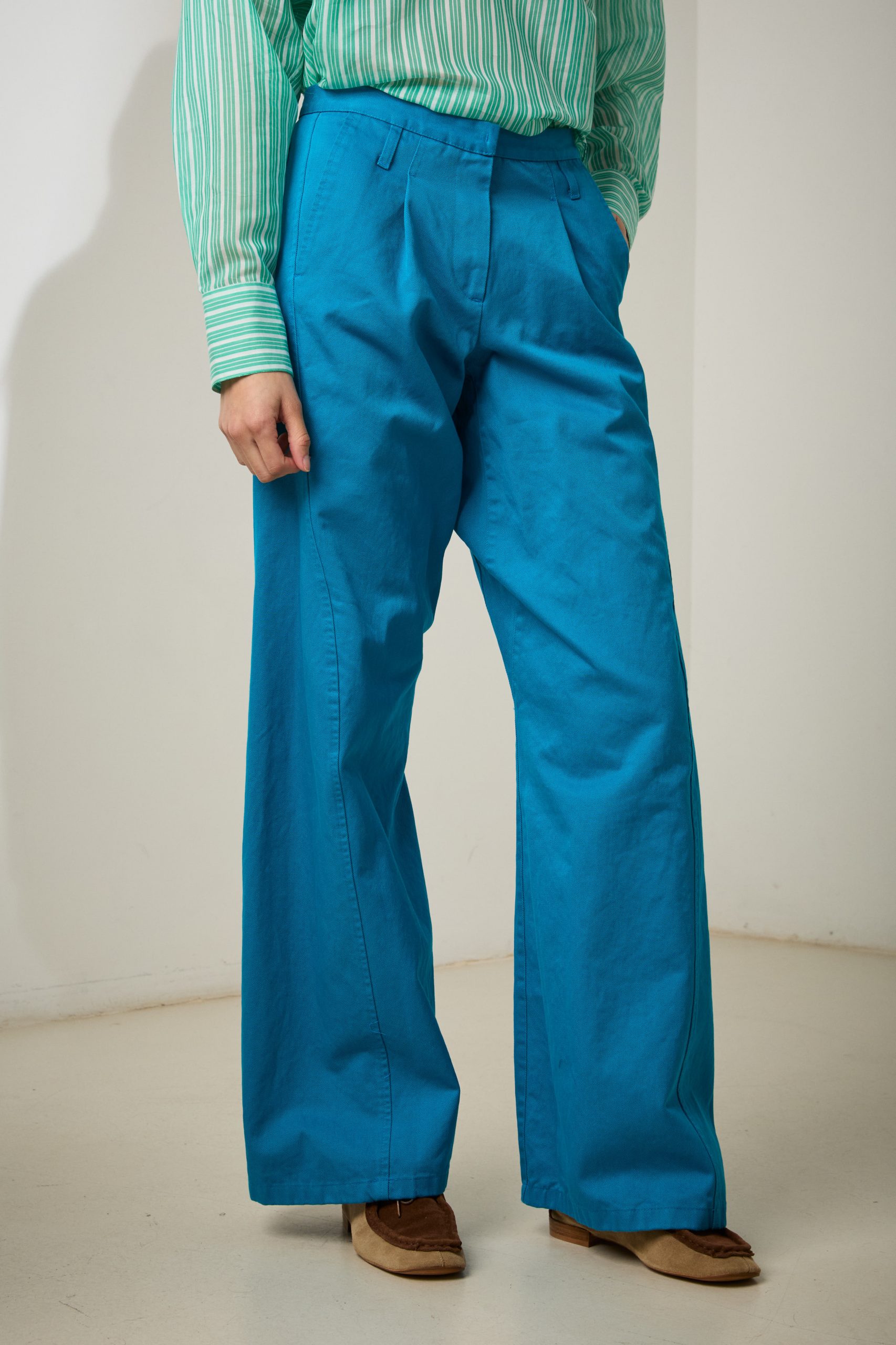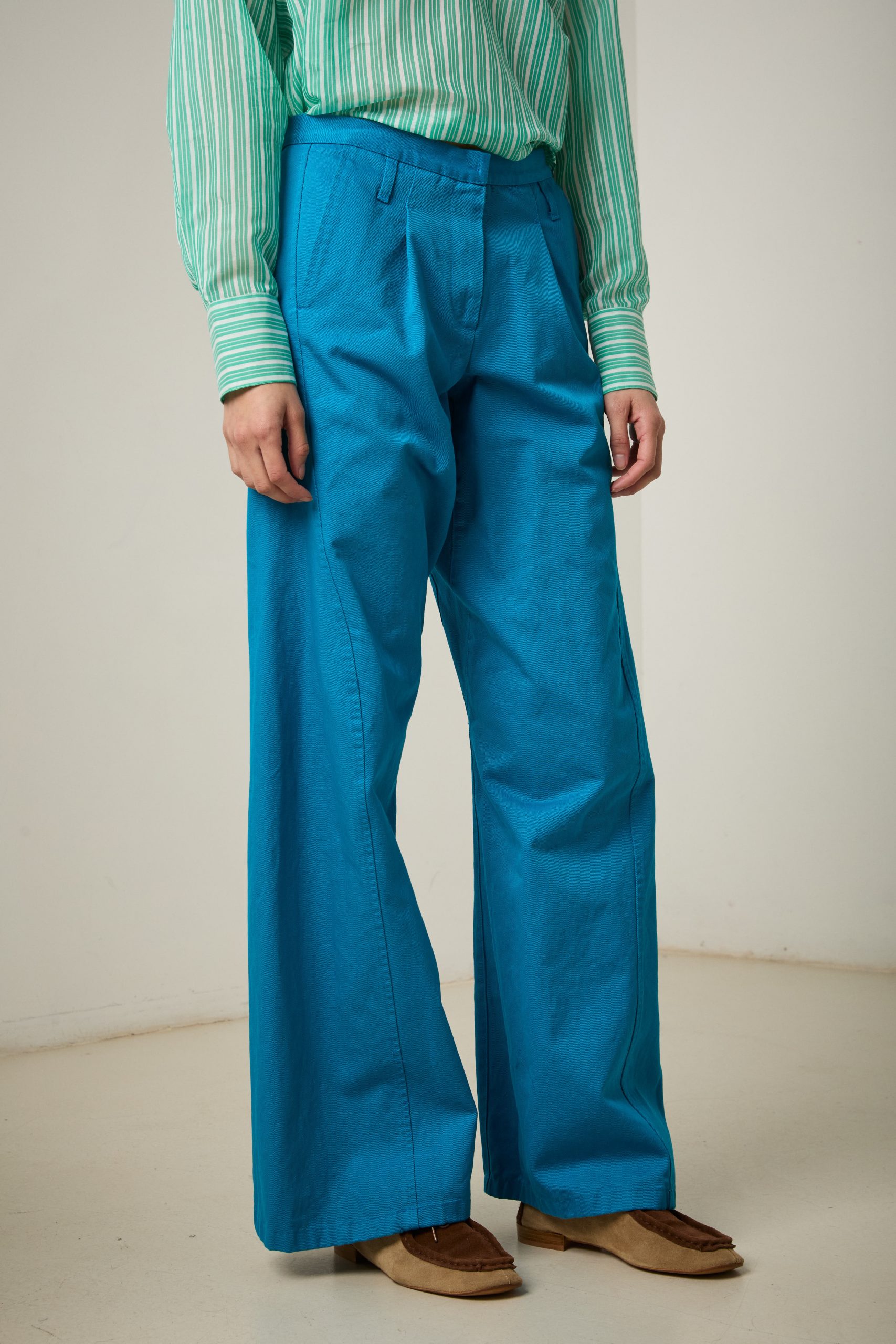 Pantaloni Carla di Carla Saibene, il nostro modello iconico dall’irresistibile aria effortlessly chic, in drill di cotone turchese