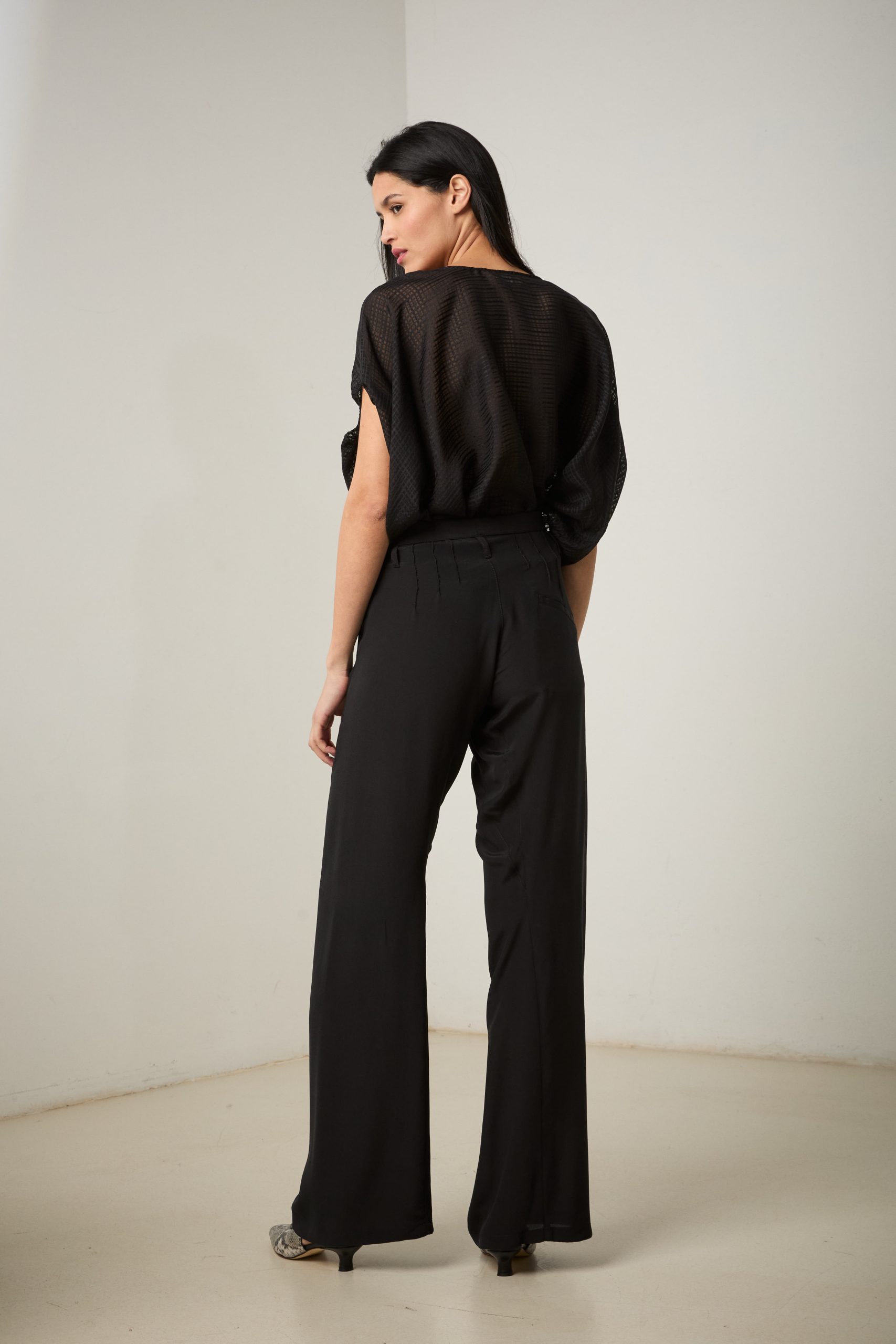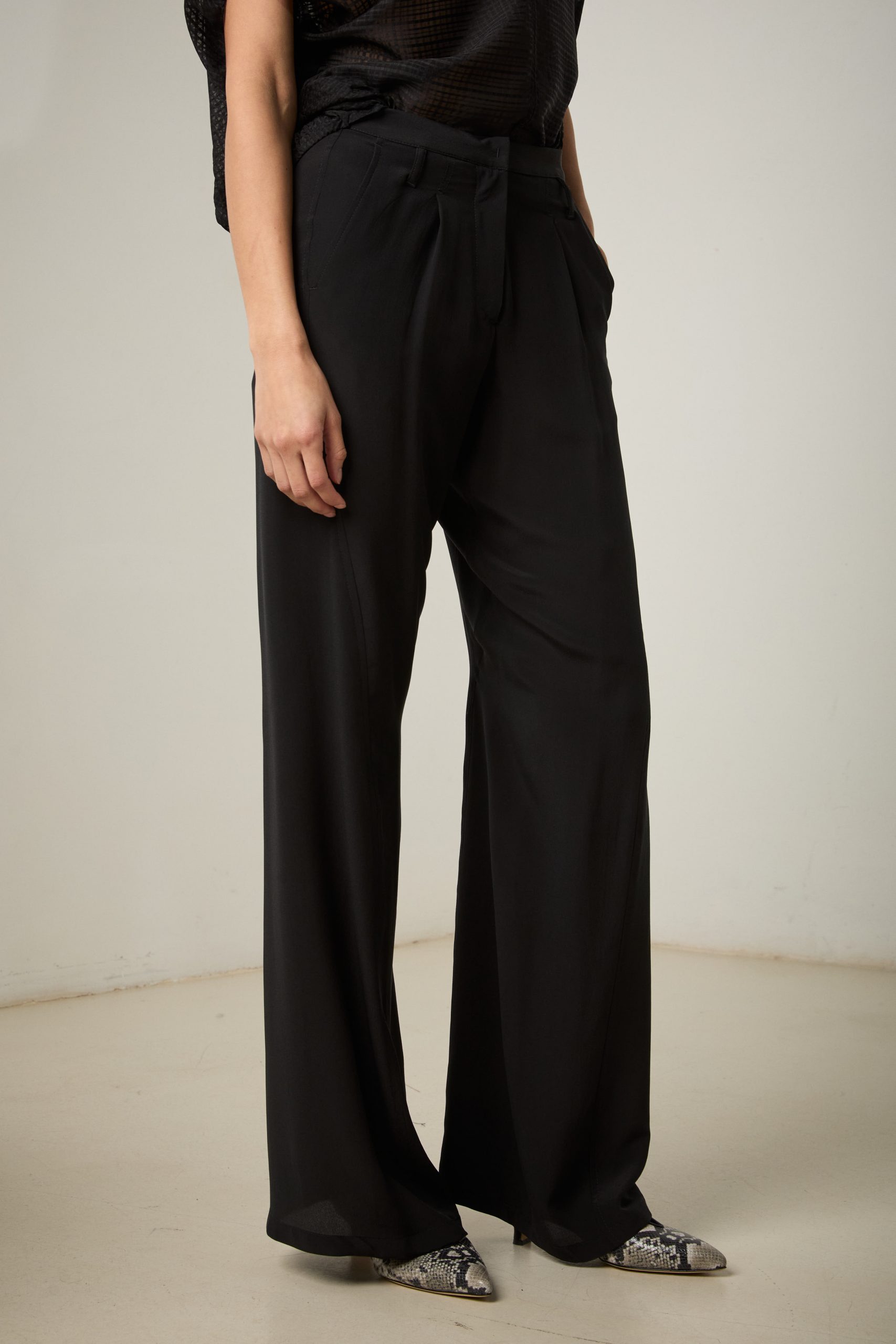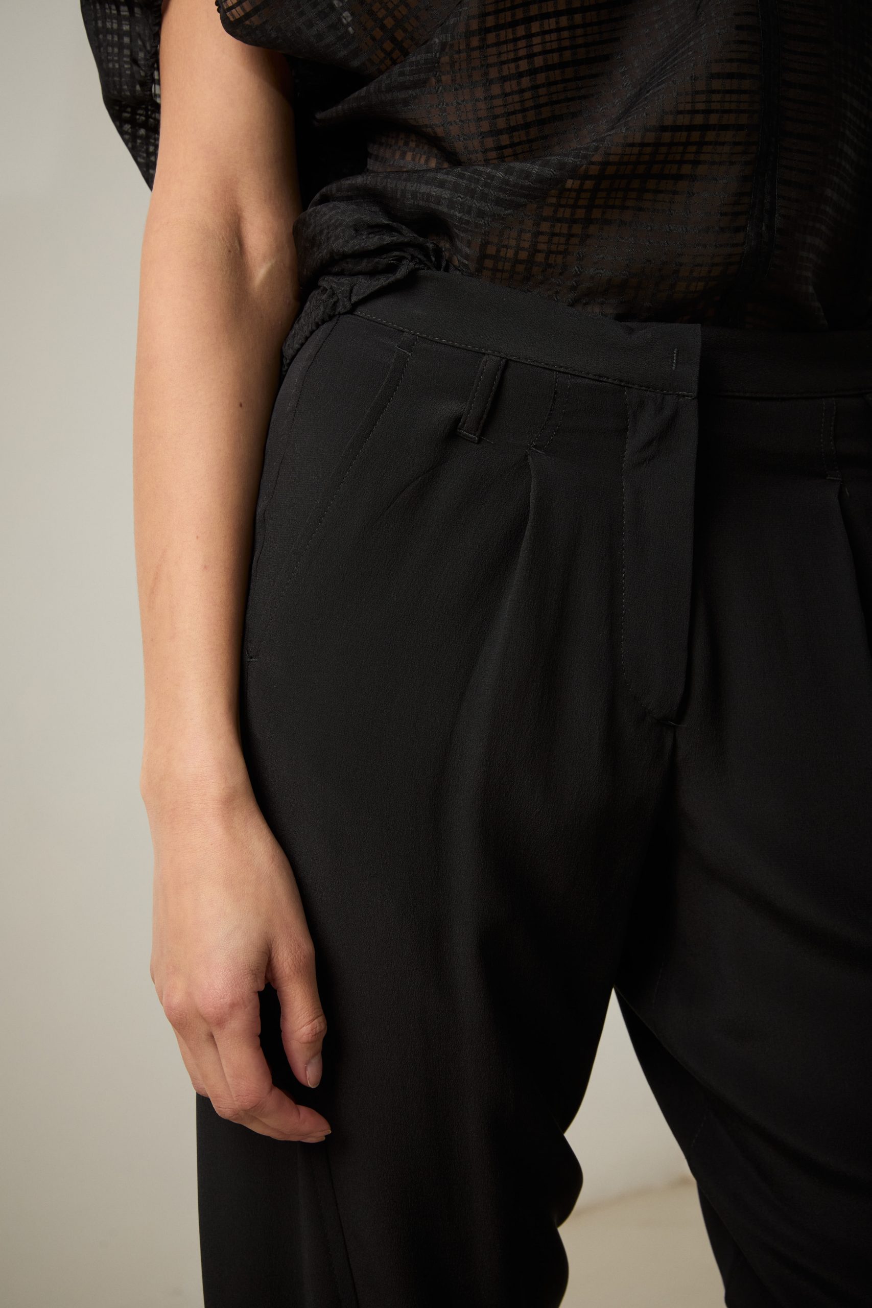 Pantaloni Carla di Carla Saibene, il nostro modello iconico dall’irresistibile aria effortlessly chic, in seta nera crepe de chine