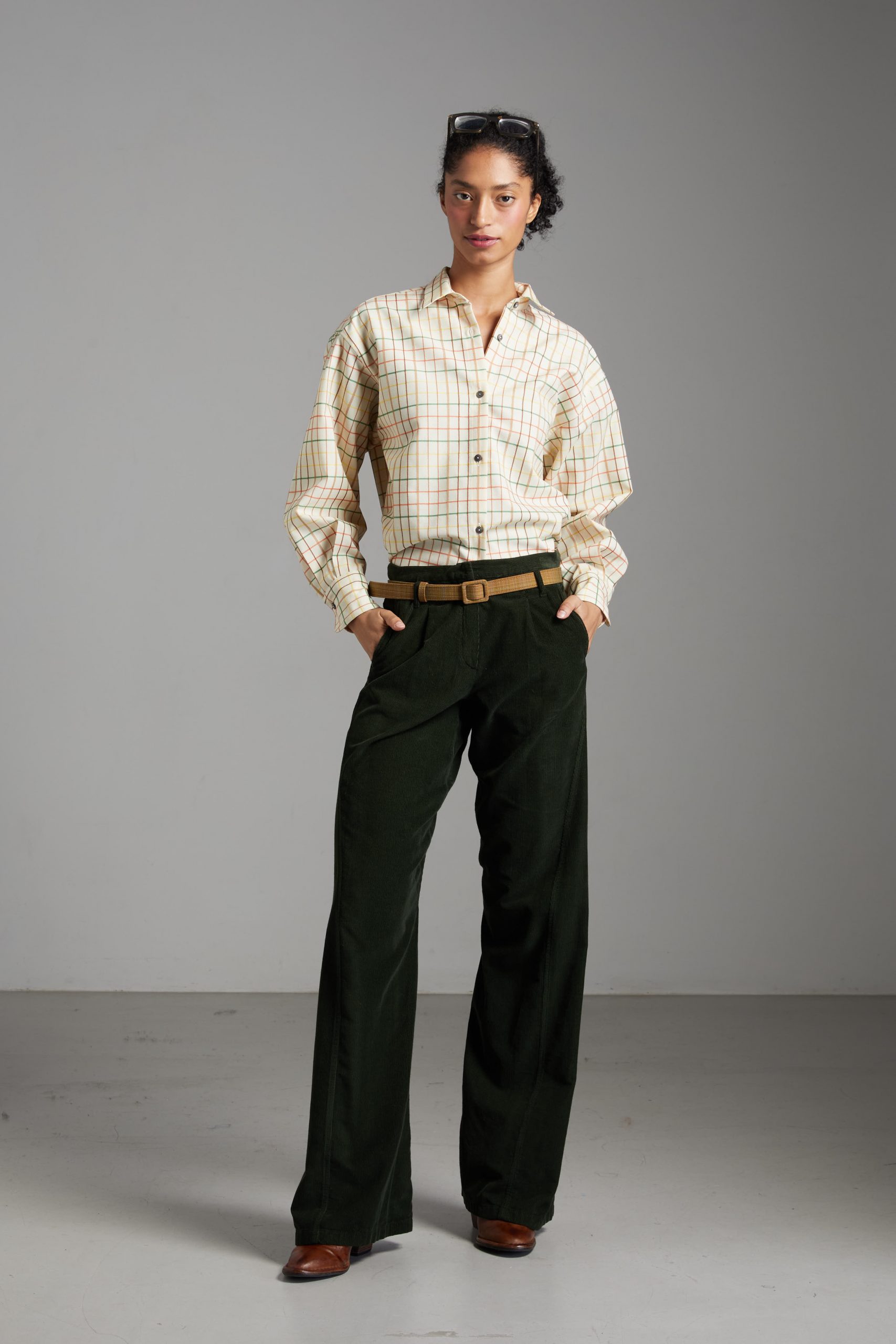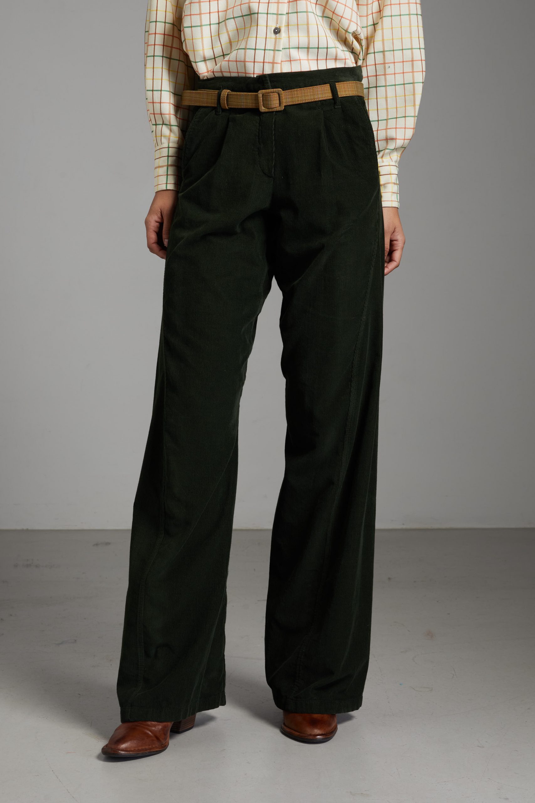Pantaloni Carla di Carla Saibene, il nostro modello iconico dall’irresistibile aria effortlessly chic, in velluto a coste sottili verde foresta