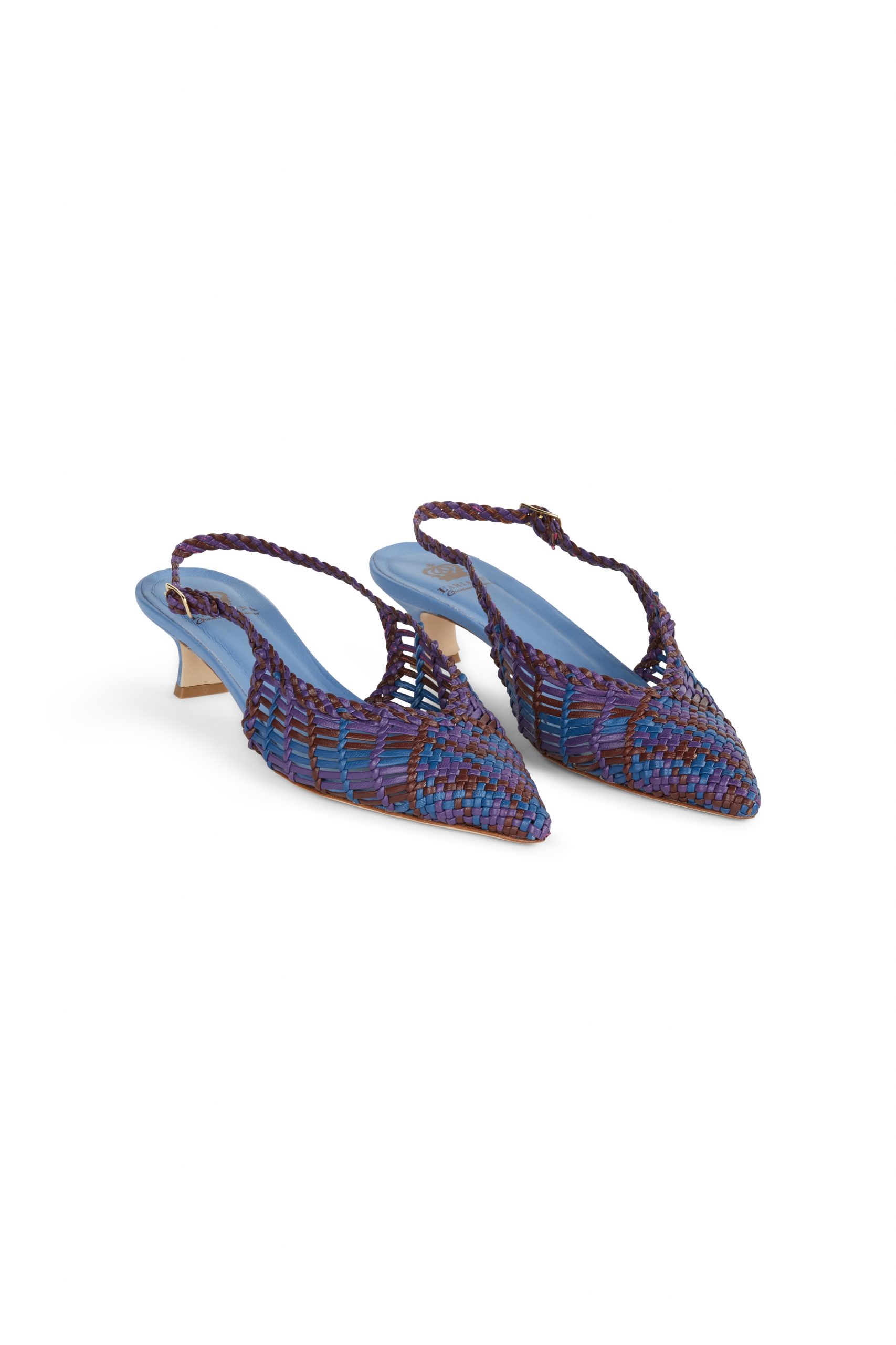 Slingback in pelle intrecciata blu viola e marrone