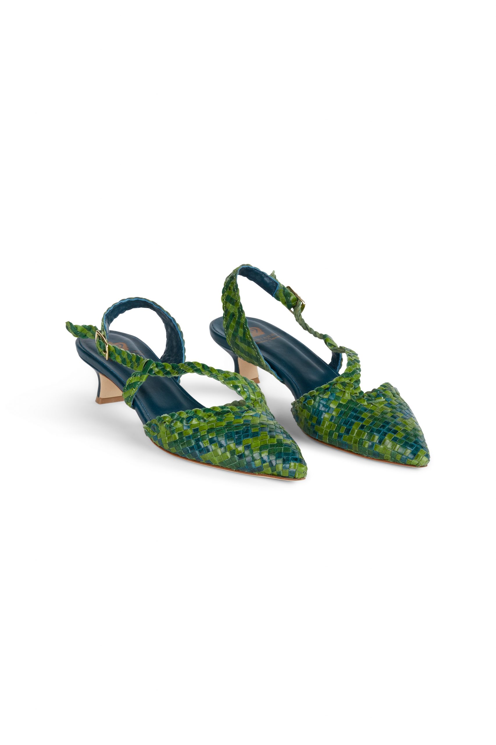Slingback verde in pelle intrecciata